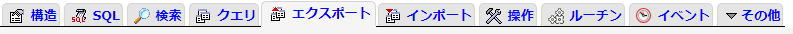 ローカルのphpMyAdminに入ったらページ上部にある「エクスポート」を押す